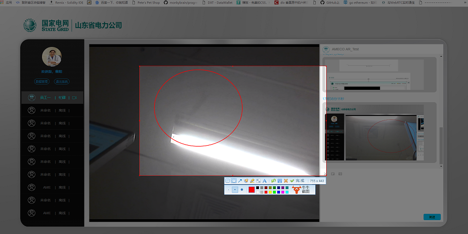 远程视频数据协助系统主要是通过工作人员佩戴智能AR眼镜视频连线处于WEB端的专家人员,即时进行视频、语音、图文、屏幕共享、鼠标共享、文档共享等多种远程指导方式,使专家在任何情况任何地点进行远程工作指导。