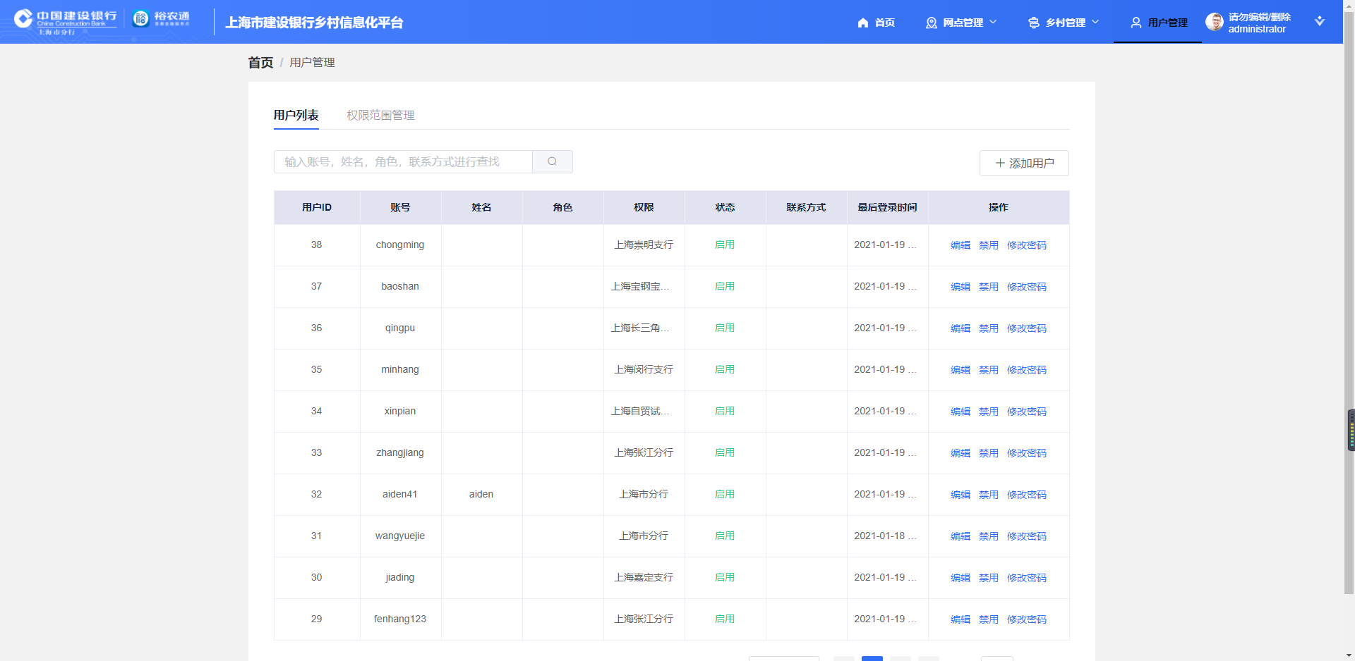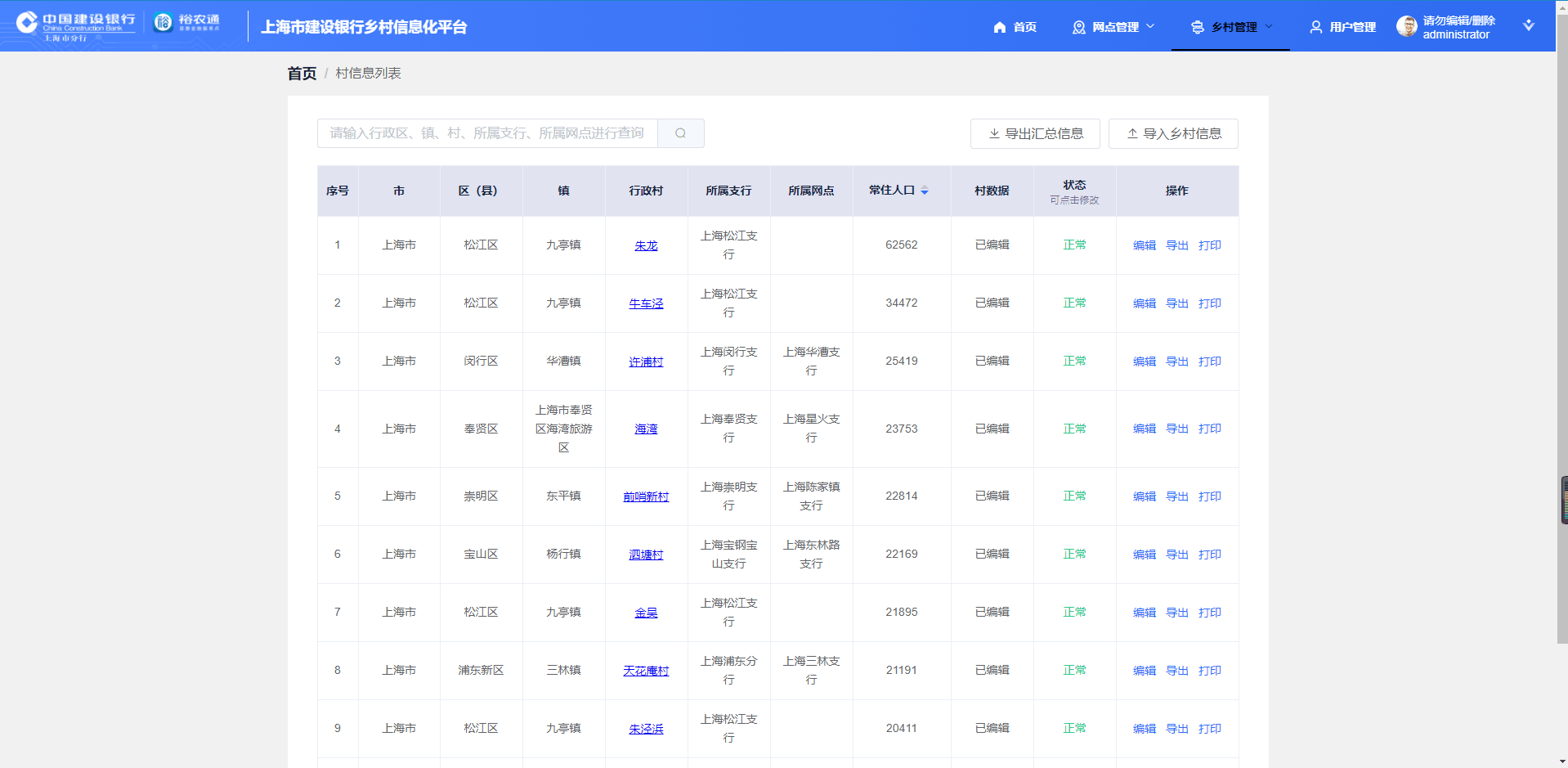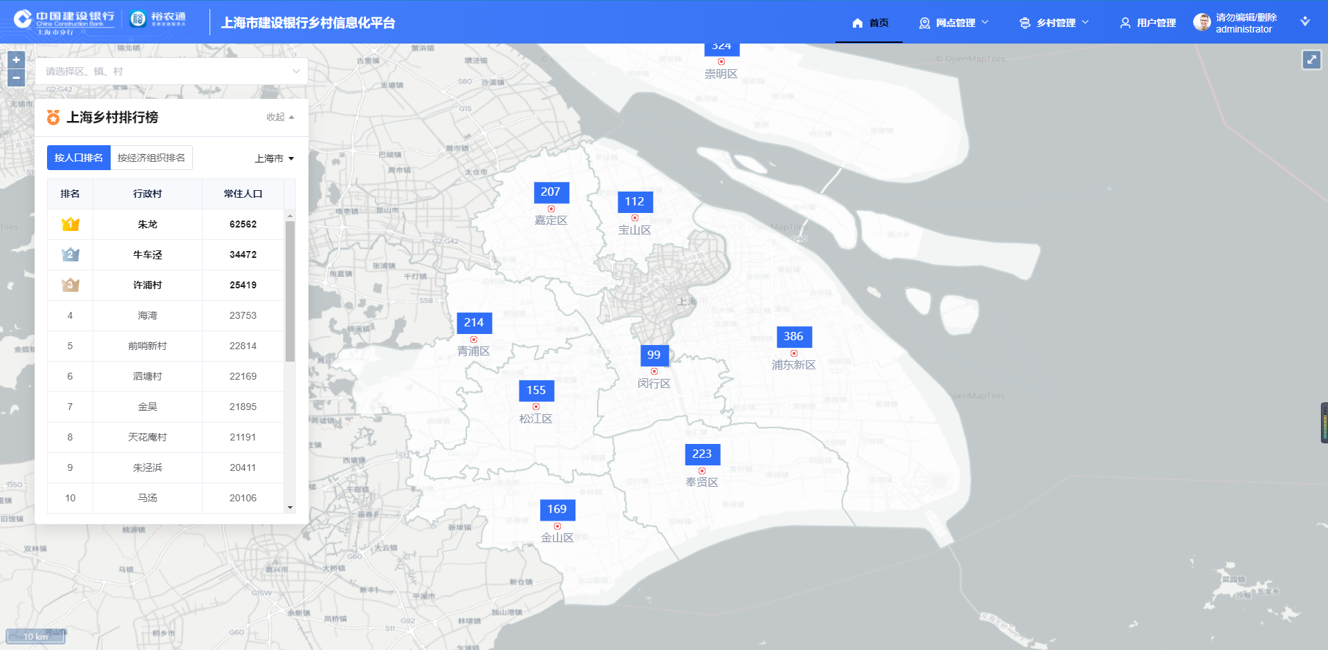 该乡村信息管理平台主要侧重于对基本信息的管理、统计、分析以及结合GIS地图的空间分析功能,在地图上标注出服务站点的覆盖范围,以及对于整个系统的业务数据进行统计分析展示。